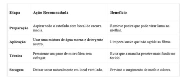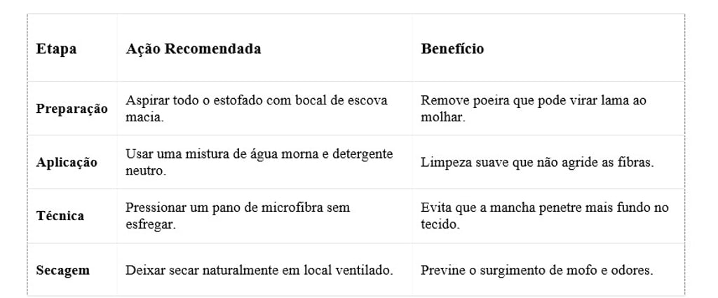 Para manchas mais resistentes, uma solução de vinagre branco e água em partes iguais pode ser eficaz, pois o vinagre ajuda a quebrar as moléculas de sujeira sem a necessidade de produtos químicos pesados. Lembre-se sempre de usar o mínimo de água possível, pois o excesso de umidade é o maior inimigo da estrutura interna do seu sofá.